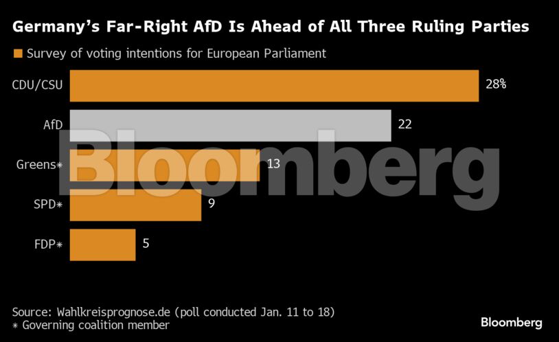 Σε ολόκληρη την πατρίδα της φον ντερ Λάιεν, η στήριξη για το κόμμα το οποίο χαρακτηρίζει την Ε.Ε. ως ένα «αποτυχημένο σχέδιο» είναι ισχυρή και λαμβάνει τη δεύτερη θέση, μετά από το κόμμα των Συντηρητικών και σταθερά μπροστά από τους Σοσιαλδημοκράτες του Καγκελάριου Σολτς. Η πρόσφατη έξαρση των μαζικών διαδηλώσεων κατά του AfD υπογραμμίζει περαιτέρω τις ανησυχίες για τον αυξανόμενο γερμανικό εθνικισμό.