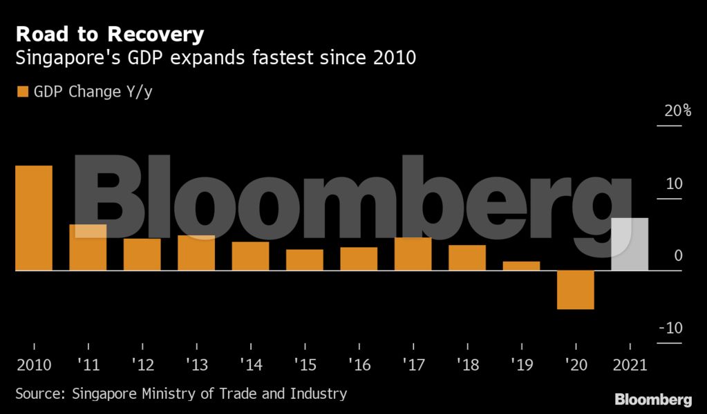 Η ανάκαμψη της οικονομίας της Σιγκαπούρης επιταχύνθηκε τους τελευταίους τρεις μήνες του 2021, με τη χαλάρωση των περιοριστικών μέτρων και την ισχυρή μεταποίηση που δίνουν ώθηση στην οικονομία για ολόκληρο το έτος.