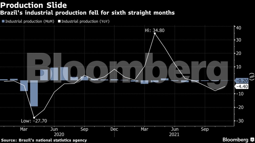 Η βιομηχανική παραγωγή της Βραζιλίας μειώθηκε τον Νοέμβριο για έκτο συνεχόμενο μήνα, προκαλώντας ανησυχίες για την έκταση της ύφεσης στη μεγαλύτερη οικονομία της Λατινικής Αμερικής.