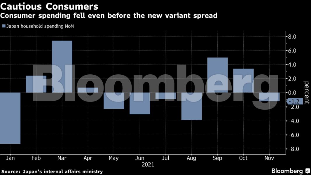 Οι δαπάνες των ιαπωνικών νοικοκυριών μειώθηκαν τον Νοέμβριο για πρώτη φορά εδώ και τρεις μήνες, ένδειξη απροσδόκητης ρευστότητας στην κατανάλωση, ακόμη και πριν αρχίσει να εξαπλώνεται η παραλλαγή του ιού.