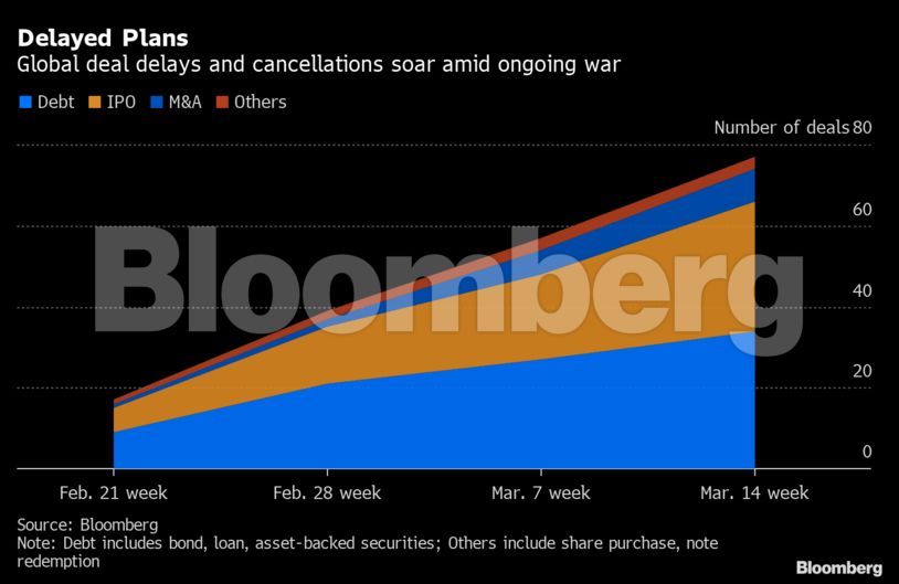 Τα πλάνα τους για άντληση κεφαλαίων φαίνεται πως ακυρώνουν πληθώρα εταιρειών ανά τον κόσμο, λόγω της αναταραχής που προκαλεί στις διεθνείς αγορές ο πόλεμος στην Ουκρανία.