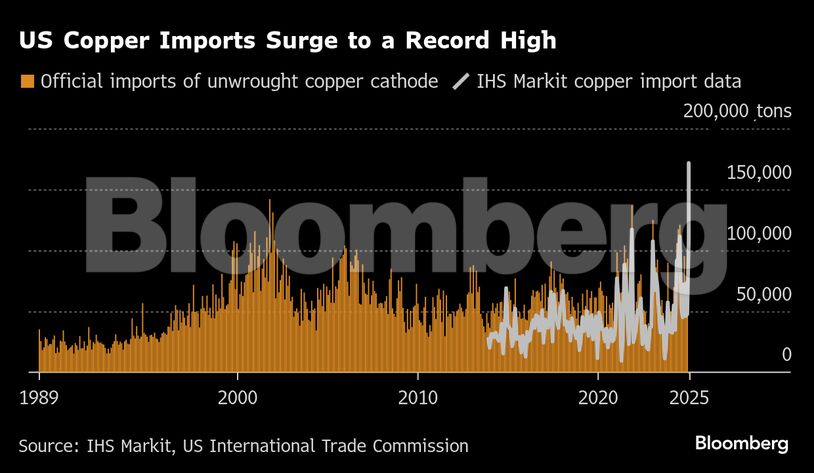 Οι εισαγωγές χαλκού στις ΗΠΑ ξεπέρασαν τους 170.000 τόνους μόνο τον Απρίλιο, καθώς οι traders σπεύδουν να προλάβουν ενδεχόμενα τιμολόγια. Η μαζική ροή έχει προκαλέσει συρρίκνωση των αποθεμάτων τόσο στο χρηματιστήριο της Σαγκάης όσο και στο London Metal Exchange. Η Mercuria Energy προειδοποιεί πως αυτή η κίνηση μπορεί να εξαντλήσει τα παγκόσμια αποθέματα και να οδηγήσει σε ιστορικό ράλι στις τιμές.