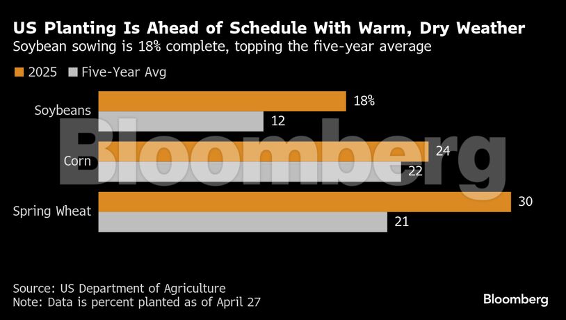 Η ζέστη και η ξηρασία επιταχύνουν τη φύτευση, με το 18% της σόγιας ήδη να έχει σπαρεί, ξεπερνώντας τον πενταετή μέσο όρο. Ωστόσο, οι περιορισμένες βροχοπτώσεις σε κρίσιμες περιοχές προκαλούν ανησυχία για τις αποδόσεις. Η έκθεση του Υπουργείου Γεωργίας των ΗΠΑ τη Δευτέρα θα παρέχει αναλυτικά στοιχεία για την πορεία των καλλιεργειών, ενώ οι traders παρακολουθούν στενά τις μετεωρολογικές προβλέψεις.