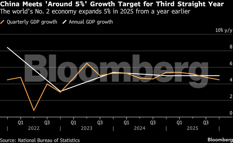 Η οικονομία της Κίνας έχασε περαιτέρω δυναμική το τελευταίο τρίμηνο, παρόλο που πέτυχε τον στόχο της κυβέρνησης για το 2025, σε ένα ακόμη έτος άνισης ανάπτυξης που θα είναι δύσκολο να διατηρηθεί σε μια περίοδο προστατευτισμού σε όλο τον κόσμο.