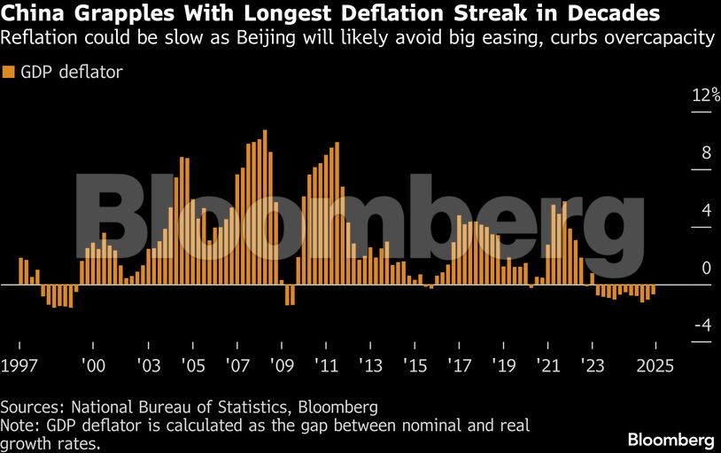 Ο αποπληθωρισμός διαρκεί πλέον τρία συνεχόμενα χρόνια, ένα σερί ρεκόρ από τότε που η Κίνα άρχισε τη μετάβαση της οικονομίας της στα τέλη της δεκαετίας του 1970. Εκτός από την Ιαπωνία, καμία άλλη μεγάλη οικονομία δεν έχει βιώσει τόσο παρατεταμένη πτώση των τιμών από το τέλος του Β’ Παγκοσμίου Πολέμου.