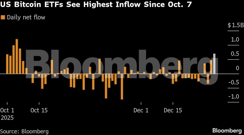 Ωστόσο, η επίμονη πώληση bitcoin που παρατηρήθηκε τις τελευταίες εβδομάδες του 2025 αντιστράφηκε τις πρώτες ημέρες συναλλαγών του τρέχοντος έτους, ανεβάζοντας τις τιμές. Οι εισροές στις 5 Ιανουαρίου σηματοδότησαν την ισχυρότερη ημερήσια καθαρή εισροή σε ETF bitcoin από τις 7 Οκτωβρίου και την 10η μεγαλύτερη θεωρητική ημερήσια εισροή από την 1η Ιανουαρίου 2025.