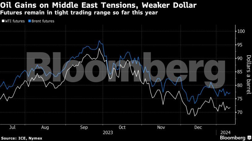 Η τιμή του πετρελαίου σημείωσε άνοδο καθώς οι εντάσεις στη Μέση Ανατολή συνεχίζονται και το αμερικανικό δολάριο εξασθένησε, ενισχύοντας τις τιμές των εμπορευμάτων. Εξάλλου, πέρα από την συνεχιζόμενη κρίση στην Ερυθρά Θάλασσα σήμερα προστέθηκε και το νέο επεισόδιο στον Κόλπο του Ομάν με την κατάληψη ελληνόκτητου πλοίου από το Ιράν που δημιούργησε προβληματισμό για τις προθέσεις της Τεχεράνης και την παράταση της αβεβαιότητας σε μια στρατηγικής σημασίας θαλάσσια περιοχή για το εμπόριο και τις εφοδιαστικές αλυσίδες.