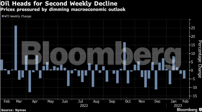 Το αμερικανικό αργό West Texas Intermediate υποχώρησε προς τα 75 δολ/βαρέλι και αναμένεται να σημειώσει εβδομαδιαίες απώλειες 5%. Η επανέναρξη του εμπορίου των commodities της Κίνας πραγματοποιείται εν μέσω ερωτημάτων σχετικά με το χρονοδιάγραμμα και το μέγεθος της ανάκαμψης της χώρας. Στις ΗΠΑ, τα στοιχεία έδειξαν ότι τα αποθέματα σε εθνικό επίπεδο αυξήθηκαν για έκτη εβδομάδα.