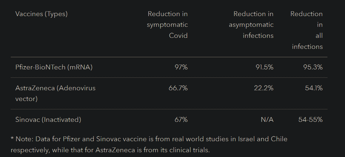 Οι μελέτες εκατομμυρίων πολιτών στο Ισραήλ που έχουν λάβει το εμβόλιο Pfizer-BioNTech δείχνουν πως τα εμβόλια mRNA προλαμβάνουν το 90% των ασυμπτωματικών μολύνσεων, κάτι σημαντικότατο σύμφωνα με την Ρέινα ΜακΙντάιρ, επιδημιολόγο στο University of New South Wales του Σίδνεϊ στη δημιουργία ανοσίας αγέλης, η οποία λαμβάνει χώρα όταν ο ιός δεν βρίσκει οργανισμούς για να προσβάλλει.