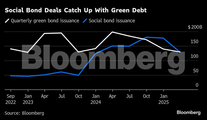 Τα κοινωνικά ομόλογα έχουν αναδειχθεί ως ένα είδος καταφυγίου για τους επενδυτές ESG, καθώς τα θέματα που σχετίζονται με το κλίμα γίνονται όλο και πιο αμφιλεγόμενα με τον Τραμπ να αποσύρει την πράσινη χρηματοδότηση και να προωθεί τα ορυκτά καύσιμα. Τα ομόλογα αυτά έχουν πλέον 1,8 τρισεκατομμύρια δολάρια σε κυκλοφορία, καλύπτοντας τη διαφορά με τα πράσινα ομόλογα που ανέρχονται σε 3,9 τρισεκατομμύρια δολάρια.