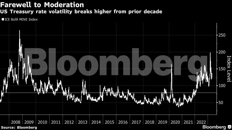Ο δείκτης μεταβλητότητας της μεγαλύτερης αγοράς ομολόγων του κόσμου έχει αυξηθεί σε επίπεδα παρόμοια με αυτά της παγκόσμιας οικονομικής κρίσης του 2008. Η πληθώρα αναταραχών στις αγορές έχει προκαλέσει προβλήματα στην αγορά ομολόγων αλλά και τη γενικότερη οικονομία το 2023, από την τραπεζική κρίση μέχρι την πολιτική αντιπαράθεση μεταξύ των Ρεπουμπλικάνων και των Δημοκρατικών για το ανώτατο όριο χρέους στις ΗΠΑ.