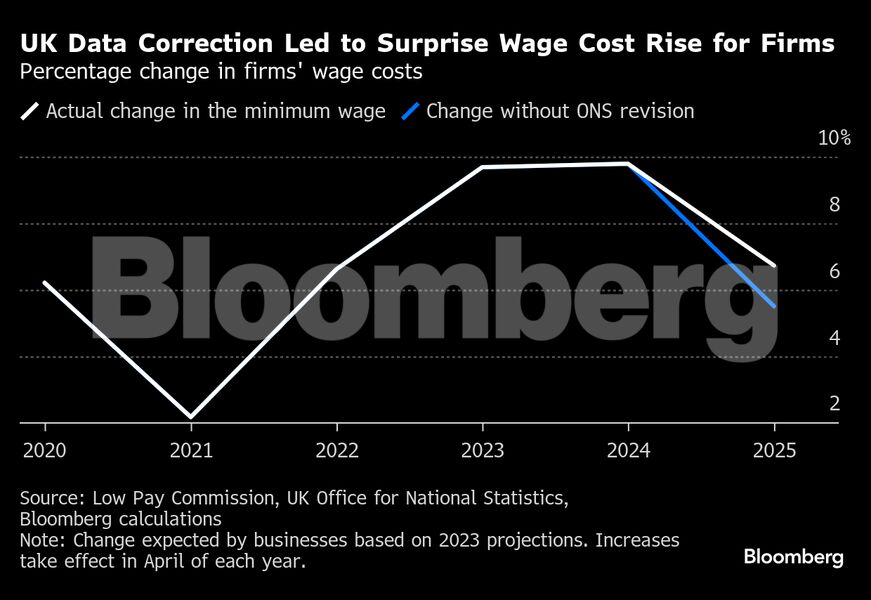 Η αύξηση, που ήταν μεγαλύτερη από τις προβλέψεις της επιτροπής χαμηλών μισθών, οφείλεται στις αλλαγές της ONS, προκαλώντας ένα επιπλέον κόστος ύψους 368 εκατομμυρίων στερλίνες για τους εργοδότες, σύμφωνα με εκτιμήσεις του Bloomberg.