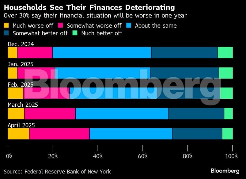 Επιπλάν, καθώς το οικονομικό και εργασιακό περιβάλλον γίνεται όλο και πιο ασταθές, οι Αμερικανοί «βλέπουν» επιδείνωση στις μελλοντικές οικονομικές τους προοπτικές.
