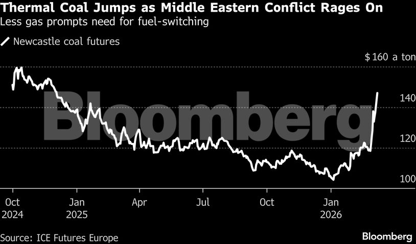 Τα συμβόλαια μελλοντικής εκπλήρωσης για τον άνθρακα Newcastle —το βασικό σημείο αναφοράς για την ασιατική αγορά— σημείωσαν άνοδο έως και 9,3% τη Δευτέρα, φθάνοντας τα 150 δολάρια ανά τόνο. Η άνοδος αυτή καταγράφηκε παράλληλα με την εκτίναξη των τιμών του πετρελαίου, το οποίο πλησίασε τα 120 δολάρια το βαρέλι, καθώς αρκετοί παραγωγοί του Κόλπου περιόρισαν την παραγωγή τους.