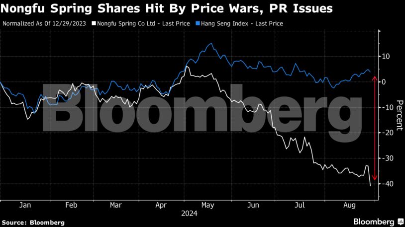 Τα έσοδα της Nongfu από τα συσκευασμένα προϊόντα πόσιμου νερού μειώθηκαν κατά 18% κατά το α’ εξάμηνο, με το ποσοστό του τομέα αυτού στα συνολικά έσοδα να καταγράφει μείωση στο 39% περίπου, από το περσινό 48%.