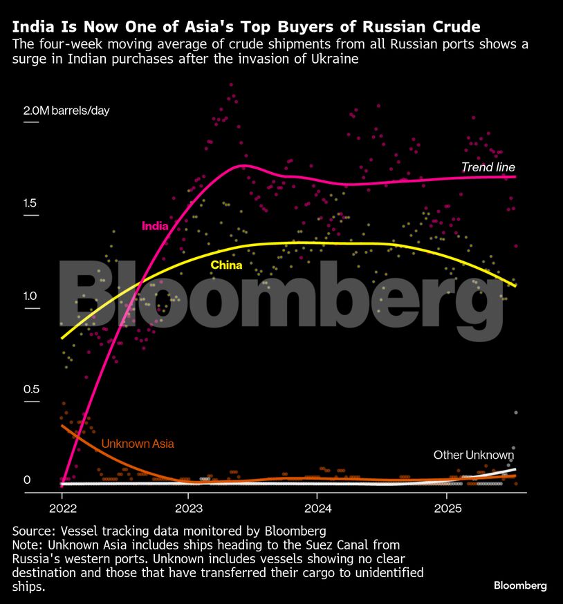 Η κυβέρνηση Τραμπ συνέχισε τις λεκτικές επιθέσεις κατά της Ινδίας τις τελευταίες εβδομάδες, με τον εμπορικό σύμβουλο του Λευκού Οίκου Πίτερ Ναβάρο να κατηγορεί το Νέο Δελχί ότι χρηματοδοτεί την εκστρατεία της Ρωσίας στην Ουκρανία και να την αποκαλεί «πόλεμο του Μόντι».