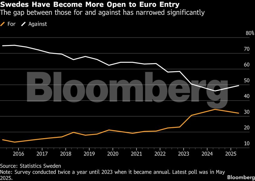 Αν και η συζήτηση βρίσκεται σε αρχικό στάδιο, μια αξιοσημείωτη αλλαγή λαμβάνει χώρα καθώς οι συνθήκες μεταβάλλονται. Το 2003, όταν οι ψηφοφόροι απέρριψαν το κοινό νόμισμα της Ευρώπης σε δημοψήφισμα, το επίκεντρο ήταν η ικανότητα της κορόνας να λειτουργεί ως αποθεματικό για τη μεγαλύτερη οικονομία της Σκανδιναβίας, αλλά τώρα οι γεωπολιτικές ανησυχίες έχουν προσθέσει μια νέα διάσταση.