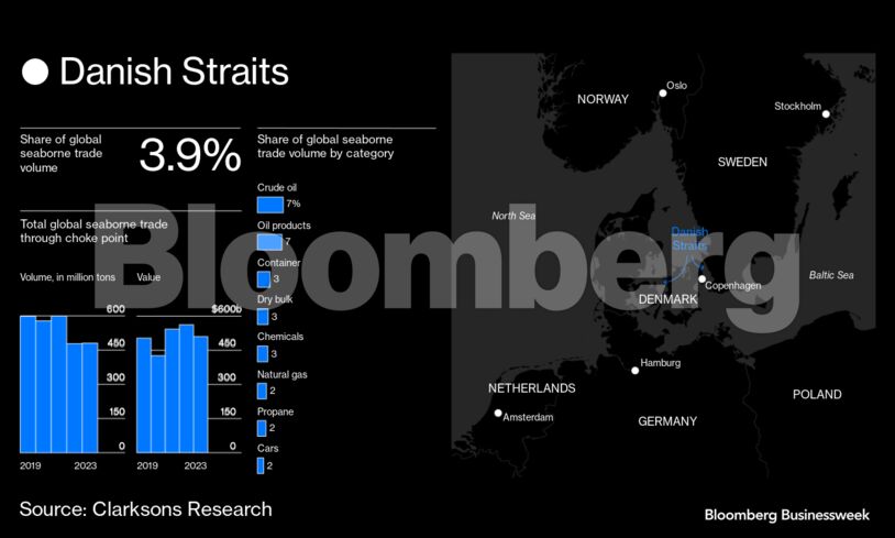 Τα στενά της Δανίας διακινούν περίπου μισό τρισεκατομμύριο δολάρια σε εμπόριο ετησίως και περίπου το 7% του παγκόσμιου θαλάσσιου πετρελαίου, σύμφωνα με στοιχεία της Clarkson Research Services Ltd.