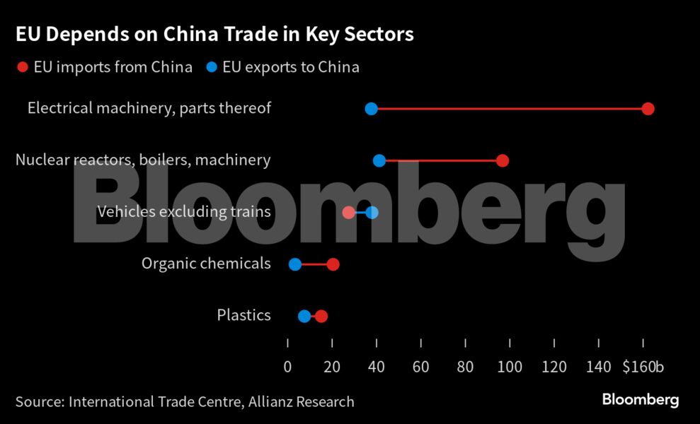 Οι ειδικοί προειδοποιούν ότι μια εμπορική σύγκρουση με την Κίνα θα ήταν ασύμμετρη, καθώς η Ευρώπη είναι πιο εξαρτημένη από την Κίνα από ό,τι η Κίνα από την Ευρώπη. Σε περίπτωση επιβολής δασμών, η Κίνα θα μπορούσε να στραφεί σε άλλες αγορές, ενώ η Ευρώπη θα δυσκολευόταν να βρει εναλλακτικές πηγές για τα κινεζικά αγαθά που χρειάζεται.