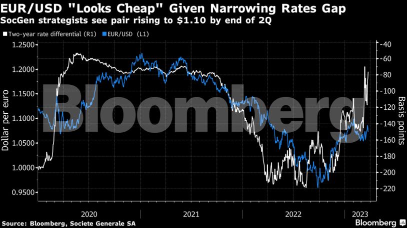Τα επιτόκια των ευρωπαϊκών swaps βραχυπρόθεσμης διάρκειας πλησιάζουν τα αντίστοιχα επιτόκια των ΗΠΑ, μειώνοντας τη διαφορά σε μόλις 70 μονάδες βάσης νωρίτερα τον Μάρτιο. Αυτό το επίπεδο παρατηρήθηκε για τελευταία φορά όταν το ευρώ ήταν πάνω από το 1,21 δολάριο το 2021, δήλωσαν οι στρατηγικοί αναλυτές της SocGen.