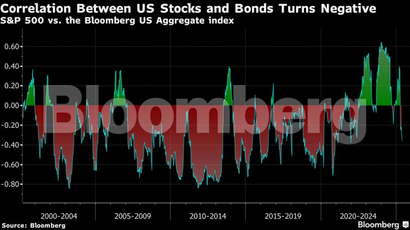 Βασικό στοιχείο της ανάκαμψης ήταν η επιστροφή της παραδοσιακής αντίστροφης σχέσης μεταξύ μετοχών και ομολόγων. Η συσχέτιση μεταξύ των αμερικανικών μετοχών και των σταθερών εισοδημάτων κατά τους τελευταίους έξι μήνες έφτασε στο πιο αρνητικό επίπεδο από το 2021, πράγμα που σημαίνει ότι τα ομόλογα τείνουν να αυξάνονται όταν οι μετοχές καταγράφουν πτώση και το αντίστροφο.