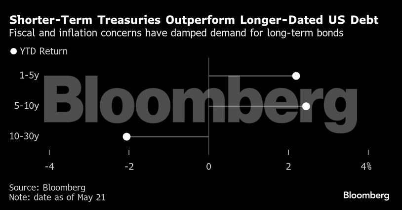 Ενώ τα μακροπρόθεσμα ομόλογα δέχονται πιέσεις, καθώς οι επενδυτές απαιτούν υψηλότερες αποδόσεις για να αντισταθμίσουν τους κινδύνους του δημοσιονομικού ελλείμματος, τα βραχυπρόθεσμα ομόλογα αντέχουν καλύτερα, είπε. Αυτό οφείλεται στο γεγονός ότι οποιαδήποτε οικονομική επιβράδυνση θα επέτρεπε στην Ομοσπονδιακή Τράπεζα να μειώσει τα επιτόκια, ωφελώντας αυτά τα χρεόγραφα, καθώς είναι πιο ευαίσθητα στη νομισματική πολιτική και λιγότερο ευάλωτα στις δημοσιονομικές ανησυχίες.