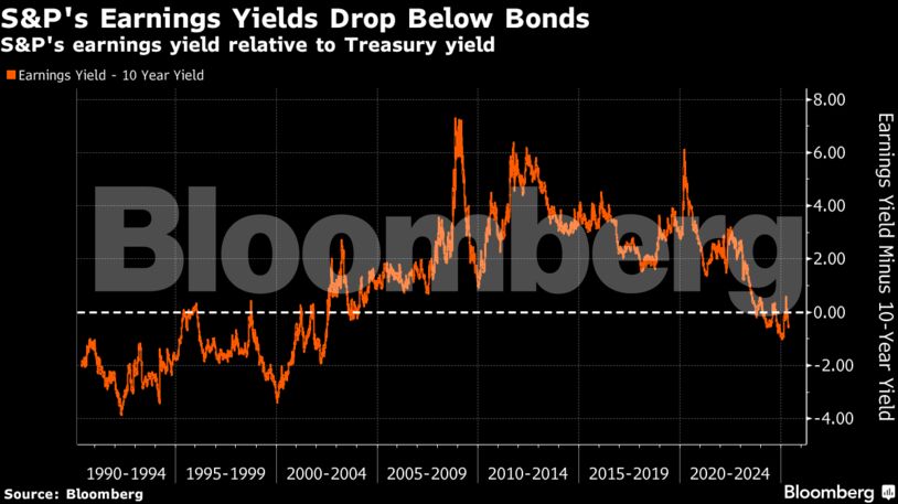 Τροφοδοτούμενη από θετικά μηνύματα για εμπορικές συμφωνίες και σταθερά κέρδη στον τομέα της τεχνολογίας, η ανάκαμψη των μετοχών έχει ωθήσει τις αποτιμήσεις του S&P 500 κοντά σε ιστορικά υψηλά επίπεδα. Η απόδοση των κερδών του S&P 500 έχει μειωθεί στο 3,95%, περίπου μισή ποσοστιαία μονάδα κάτω από τις αποδόσεις των 10ετών ομολόγων.