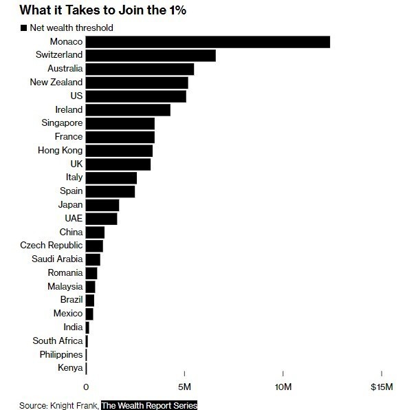 Πόσα χρήματα χρειάζεσαι για να αποτελέσεις μέρος του πλουσιότερου 1% της χώρας σου;