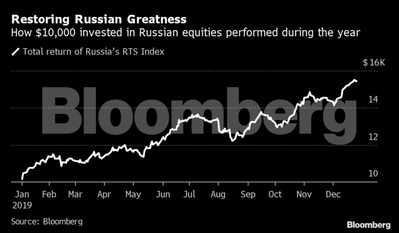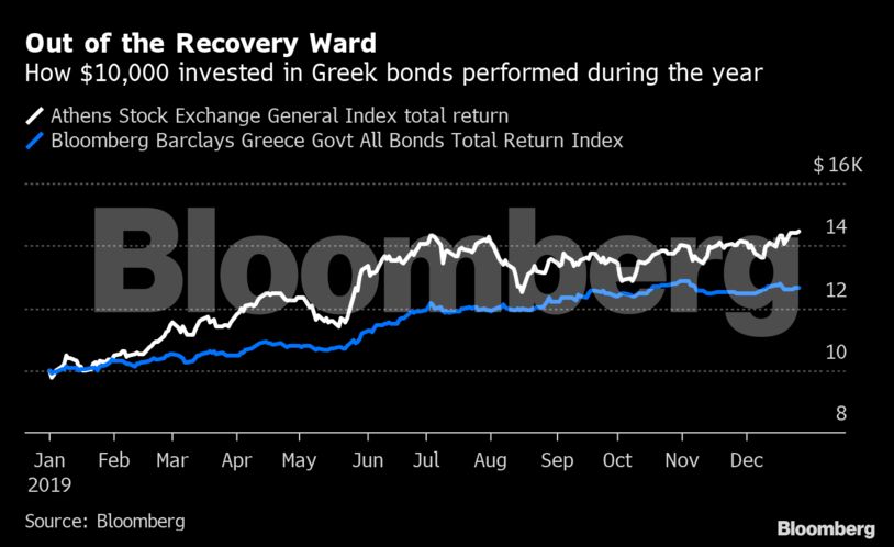 Την επίδοση του ρωσικού χρηματιστηρίου σε ετήσιες αποδόσεις συναγωνίστηκε η Ελλάδα, η οποία ξεκίνησε τη δεκαετία με μια χρηματοπιστωτική κρίση και διάσωση από το Διεθνούς Νομισματικού Ταμείου: Τώρα, τελειώνει με ένα εκπληκτικό ράλι τόσο για τις μετοχές όσο και για ομόλογα.