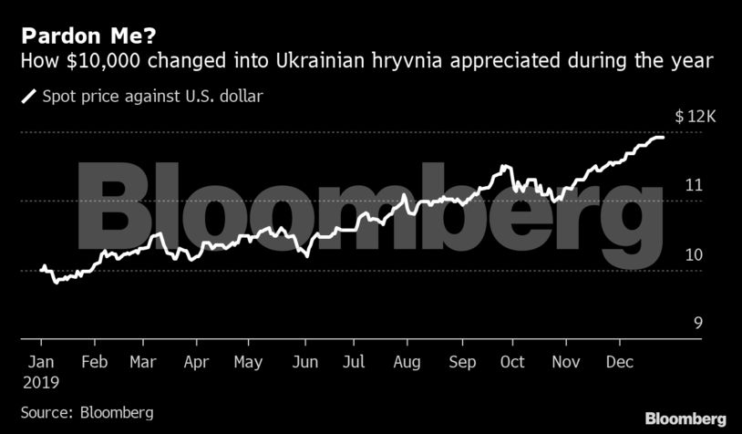 Το νόμισμα με τις καλύτερες επιδόσεις παγκοσμίως φέτος από περισσότερα από 130 που παρακολουθεί το Bloomberg; Είναι το ουκρανικό εθνικό νόμισμα, το οποίο αδιάλειπτα και σταθερά όλο το 2019 έβλεπε την ισοτιμία του να ενισχύεται.