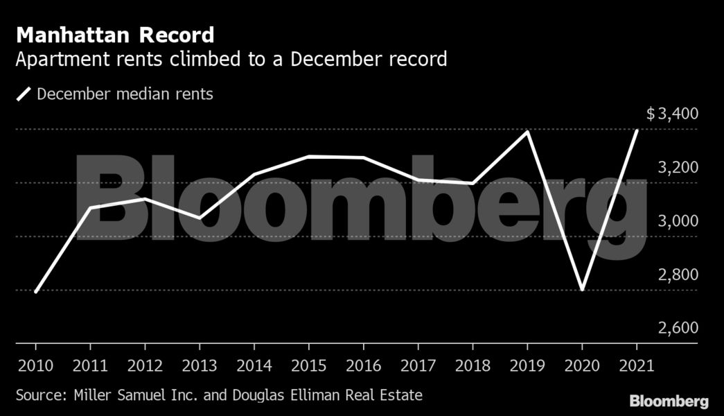 Σε επίπεδα – ρεκόρ αυξήθηκαν οι τιμές των ενοικίων στο Μανχάταν για τον μήνα Δεκέμβριο, κυρίως λόγω της αυξανόμενης ζήτησης για κτίρια και τοποθεσίες οι οποίες διαθέτουν θυρωρούς.