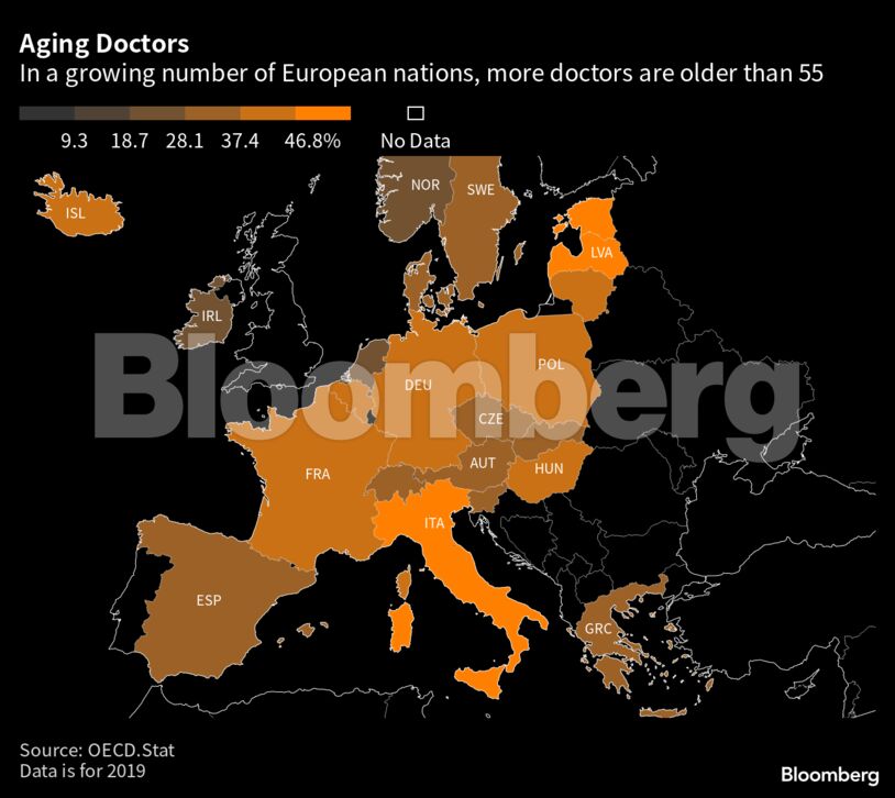 Ο Παγκόσμιος Οργανισμός Υγείας χαρακτήρισε την έλλειψη αυτή ως «βόμβα που κινδυνεύει να εκραγεί» σε περσινή της ανάλυση. Στη Γαλλία, για παράδειγμα, περίπου το ήμισυ των γιατρών έχουν μέσο όρο ηλικίας άνω των 55 ετών, ενώ στην Ιταλία, οργάνωση υγειονομικών προβλέπει πως 100.000 ιατρών δημοσίου θα παραιτηθούν ή θα συνταξιοδοτηθούν την επόμενη τετραετία.