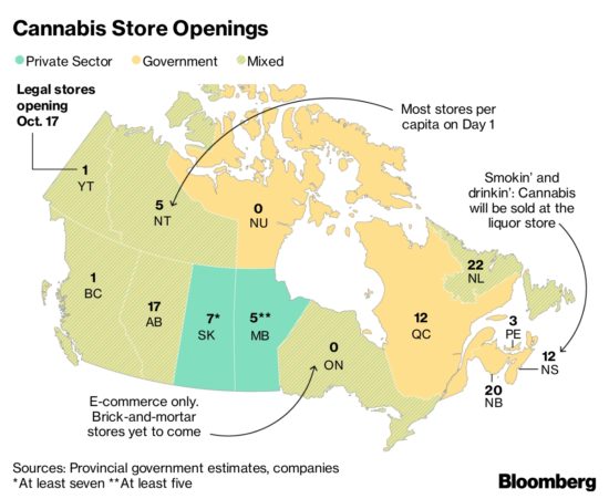 Είναι ενδεικτικό πάντως ότι στην περιοχή της πόλης του Οντάριο αρχικά θα υπάρξει μόνο ένα σημείο λιανικής πώλησης, ενώ στη Βρετανική Κολούμπια (που καταγράφει και τα υψηλότερα επίπεδα χρήσης κάνναβης) θα υπάρχει μόνο ένα κατάστημα που θα είναι ανοιχτό μόνο τις Τετάρτες.