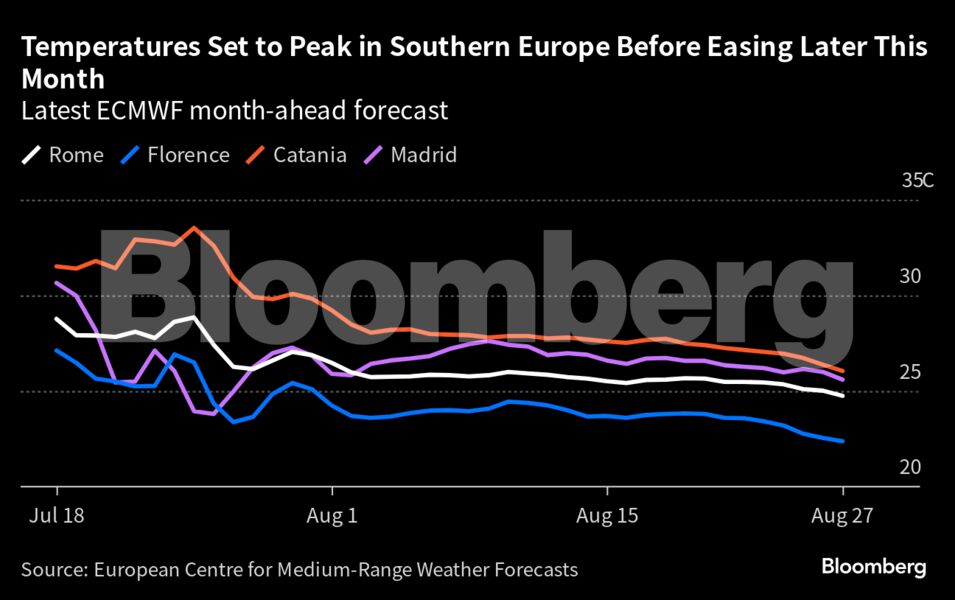 Η ακραία ζέστη που καλύπτει τη Μεσόγειο πρόκειται να κορυφωθεί σε τμήματα της Ιταλίας την Τρίτη, με τις αρμόδιες αρχές να προχωρούν σε νέες προειδοποιήσεις για έκτακτα καιρικά φαινόμενα, καθώς οι θερμοκρασίες πλησιάζουν το υψηλότερο επίπεδο όλων των εποχών στην Ευρώπη και οι πυρκαγιές πλήττουν την Ελλάδα, σημειώνει το Bloomberg.