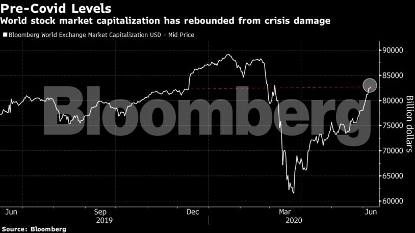 Το ράλι 40% και πλέον του MSCI All Country World Index (που περιλαμβάνει μετοχές τόσο του αναδυόμενου όσο και του ανεπτυγμένου κόσμου) -από τα χαμηλά του Μαρτίου, αποτελεί τις καλύτερες επιδόσεις από το 2009, με αποτέλεσμα τις υψηλότερες αποτιμήσεις από το 2002 και υποδεικνύει ότι δεν οφείλεται μόνο στα μέτρα των κυβερνήσεων που έσωσαν τους επενδυτές, αλλά και οι προσδοκίες για ένα ριμπάουντ της πραγματικής οικονομίας.