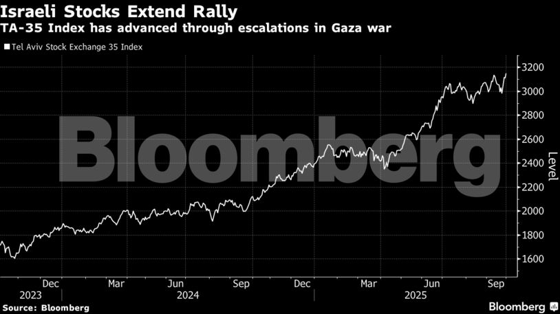 Οι μετοχές στο Ισραήλ «εκτοξεύθηκαν» σε ιστορικό υψηλό, καταγράφοντας την πέμπτη διαδοχική τριμηνιαία άνοδο, καθώς οι επενδυτές βλέπουν το σχέδιο 20 σημείων που συμφώνησαν ο πρωθυπουργός Μπενιαμίν Νετανιάχου και ο πρόεδρος των ΗΠΑ Ντόναλντ Τραμπ ως πιθανό εργαλείο για την επιτάχυνση της λήξης του πολέμου στη Γάζα.