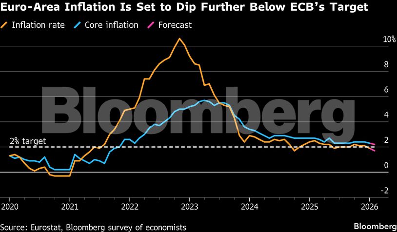 Ο πληθωρισμός στη ζώνη του ευρώ υποχώρησε ήδη οριακά κάτω από το 2% τον Δεκέμβριο και αναμένεται περαιτέρω επιβράδυνση. Οι οικονομολόγοι προβλέπουν ρυθμό 1,7% για τον Ιανουάριο, με τα στοιχεία να ανακοινώνονται την Τετάρτη.