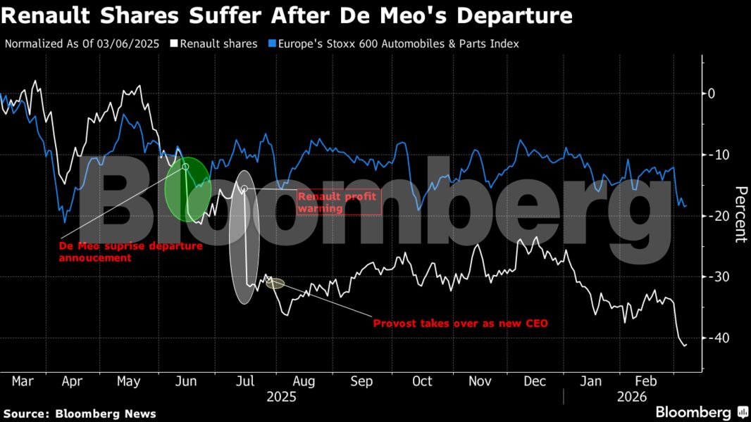 Οι μετοχές της Renault έχουν δεχθεί ισχυρές πιέσεις μετά την αποχώρηση του ντε Μέο.