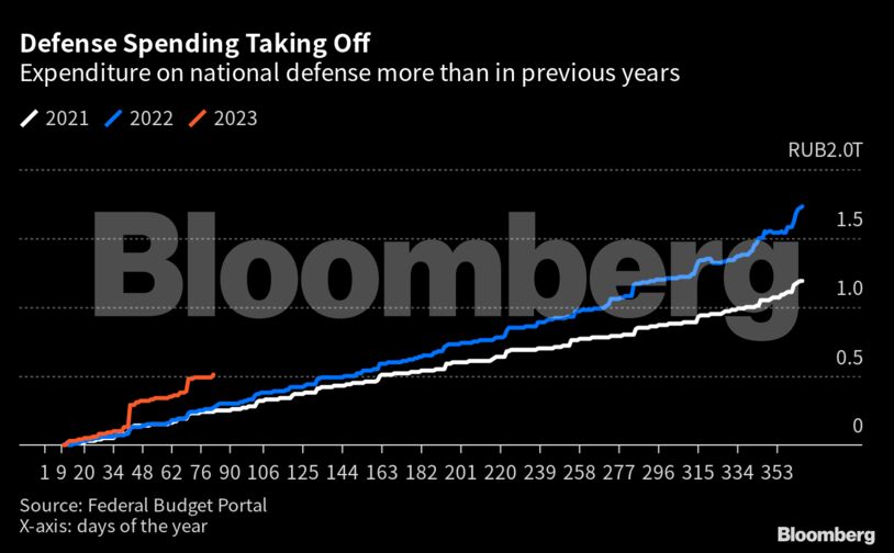 Oι απροσδιόριστες ή απόρρητες δημόσιες δαπάνες μέχρι τις 24 Μαρτίου έχουν αυξηθεί στα 2,4 τρισ. ρούβλια ($31 δισ.), σύμφωνα με επίσημα δεδομένα του Υπουργείου Οικονομικών της χώρας, υπερδιπλασιασμένες σε σχέση με τα αντίστοιχα περσινά ποσοστά, βάσει των εκτιμήσεων του Bloomberg. Το σχέδιο προϋπολογισμού της χώρας για το 2023 υποδεικνύει πως τα απόρρητα έξοδα της ρωσικής κυβέρνησης θα κυμανθούν στο 1/4 του συνολικού ποσού.