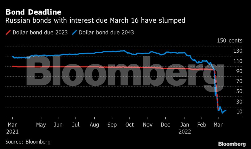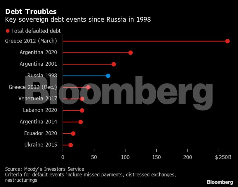 Αν και το Κρεμλίνο υποστηρίζει πως το χρέος θα αποπληρωθεί κανονικά, οι κυρώσεις της διεθνούς κοινότητας δεν επιτρέπουν την αποπληρωμή σε δολάρια. Η πιθανή ανικανότητα αποπληρωμής ή πληρωμής σε ρούβλια αντί για δολάρια αναμένεται να ξεκινήσει την αντίστροφη μέτρηση για ένα «κύμα» αθέτησης πληρωμών ομολόγων σε ξένο συνάλλαγμα τόσο εκ μέρους της ρωσικής κυβέρνησης όσο και εταιρειών όπως Gazprom, Lukoil και Sberbank.