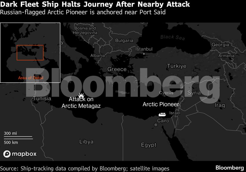 Το Arctic Pioneer, δεξαμενόπλοιο με ρωσική σημαία που χρησιμοποιείται για τη μεταφορά φορτίων από το έργο Arctic LNG —το οποίο βρίσκεται επίσης υπό αμερικανικές κυρώσεις— παραμένει ακινητοποιημένο κοντά στο Πορτ Σάιντ της Αιγύπτου από τις 3 Μαρτίου, σύμφωνα με δεδομένα παρακολούθησης πλοίων που συγκέντρωσε το Bloomberg.