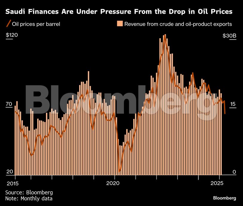 Μέχρι στιγμής, ο MBS έχει υποσχεθεί στον Τραμπ 600 δισεκατομμύρια δολάρια σε επιπλέον επενδύσεις και εμπόριο με τις ΗΠΑ για τα επόμενα τέσσερα χρόνια. Ωστόσο, οι τιμές του αργού στα 63 δολάρια περίπου το βαρέλι ασκούν νέες πιέσεις στο βασίλειο. Το Bloomberg Economics εκτιμά ότι η Σαουδική Αραβία χρειάζεται μια τιμή 96 δολαρίων το βαρέλι για να ισοσκελίσει τον προϋπολογισμό της και 113 δολάρια αν συμπεριληφθούν οι εγχώριες δαπάνες του PIF για τα έργα του MBS.