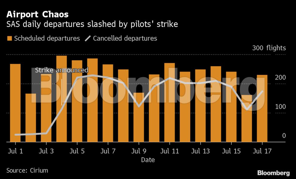 Βουτιά 32% στην επιβατική κίνηση κατέγραψε για τον μήνα Ιούλιο η σουηδική SAS, στον απόηχο της πολυήμερης απεργίας των πιλότων «προβληματικής» αεροπορικής εταιρείας.