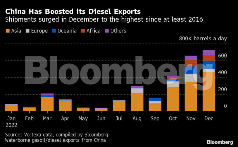 Η εξαγωγή ντίζελ από την Κίνα έχει αυξηθεί δραματικά τους τελευταίους μήνες. Αν και μόλις ένα μικρό ποσοστό προορίζεται για την Ευρώπη, οι Κινέζοι παραγωγοί έχουν αυξήσει την παραγωγή τους, κάτι το οποίο μπορούν να χρησιμοποιήσουν για την τροφοδοσία της Γηραιάς Ηπείρου όταν κι αν το επιλέξουν.