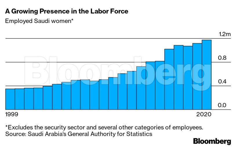 Η σκηνή αυτή είναι αντιδιαμετρικά αντίθετη σε σχέση με την κατάσταση πριν από λίγα χρόνια όπου στο συντηρητικό ισλαμικό βασίλειο κυριαρχούσαν οι άντρες εργαζόμενοι.