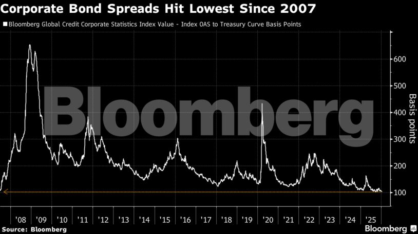 Τα spreads έχουν μειωθεί σε 103 μονάδες βάσης, το χαμηλότερο επίπεδο από τον Ιούνιο του 2007, πριν από την παγκόσμια χρηματοπιστωτική κρίση, σύμφωνα με τον ανάλογο δείκτη του Bloomberg. Ένας δείκτης για τα ομόλογα υψηλού κινδύνου σημείωσε παρόμοιο ορόσημο.