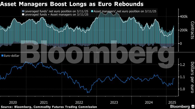 Οι διαχειριστές κεφαλαίων αύξησαν τις θέσεις που επωφελούνται από ένα ισχυρότερο ευρώ σε 262.759 συμβόλαια για την εβδομάδα έως τις 11 Μαρτίου, λίγες ημέρες αφότου η Γερμανία δήλωσε ότι θα χαλαρώσει τους δημοσιονομικούς κανόνες και θα δαπανήσει εκατοντάδες δισεκατομμύρια ευρώ για να μετασχηματίσει την ευρωπαϊκή άμυνα. Ταυτόχρονα, τα hedge funds μείωσαν τις short θέσεις τους σε ευρώ στο ελάχιστο από τον Οκτώβριο, όπως έδειξαν τα στοιχεία της Commodity Futures Trading Commission.