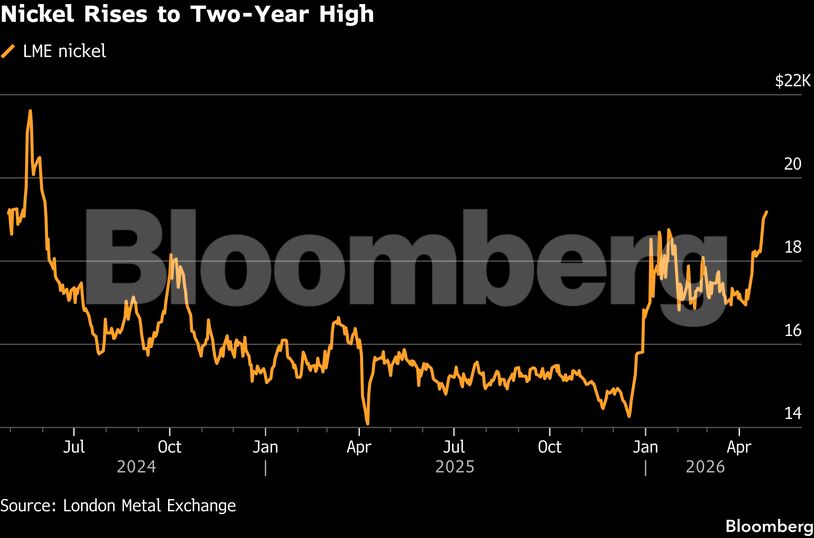 Το νικέλιο σημείωσε άνοδο σε υψηλό σχεδόν δύο ετών, καθώς οι μειωμένες ποσοστώσεις εξόρυξης στην Ινδονησία -κυρίαρχη παραγωγό χώρα- και η παγκόσμια έλλειψη θείου περιορίζουν τις προοπτικές προσφοράς για το μέταλλο που χρησιμοποιείται στις μπαταρίες.