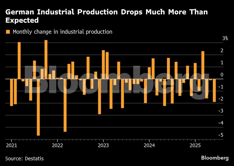 Τη μεγαλύτερη πτώση των τελευταίων 12 μηνών καταγράφει η γερμανική βιομηχανική παραγωγή, εντείνοντας τις ενδείξεις ότι η οικονομία της χώρας ενδέχεται να έχει συρρικνωθεί ακόμη περισσότερο το δεύτερο τρίμηνο απ’ ό,τι είχε αρχικά εκτιμηθεί.