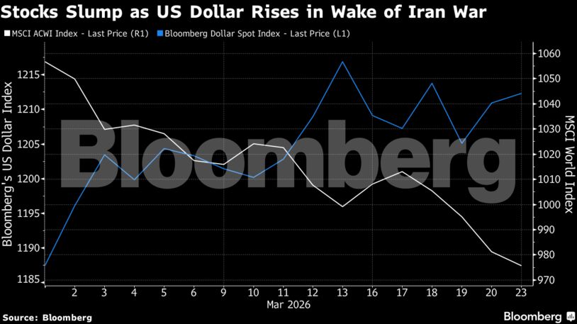 Συνολικά, οι παγκόσμιες αγορές μετοχών έχουν χάσει περίπου 11,5 τρισ. δολάρια από την έναρξη της σύγκρουσης, ενώ τα ομόλογα έχουν χάσει πάνω από 2,5 τρισ. δολάρια. Την ίδια στιγμή, το δολάριο ενισχύεται.